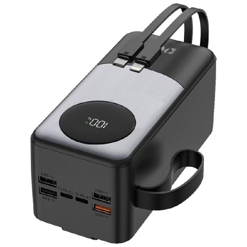 50000 мА·г тримає заряд дуже довго, можна заряджати кілька пристроїв багато разів поспіль. Дисплей зручний — видно точний рівень заряду, а вбудовані кабелі роблять використання надзвичайно простим — більше жодних плутаних проводів. Стильний, потужний і дуже зручний — рекомендую всім, хто багато часу проводить поза домом!