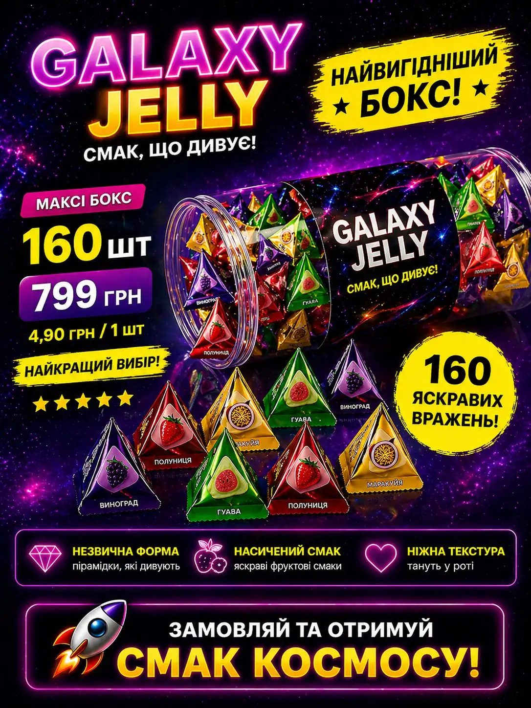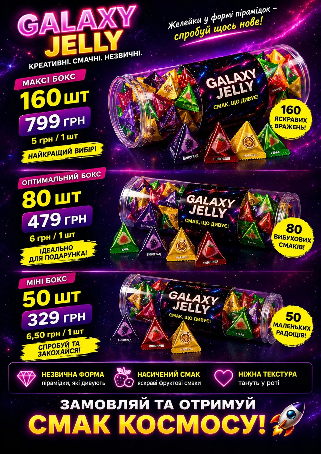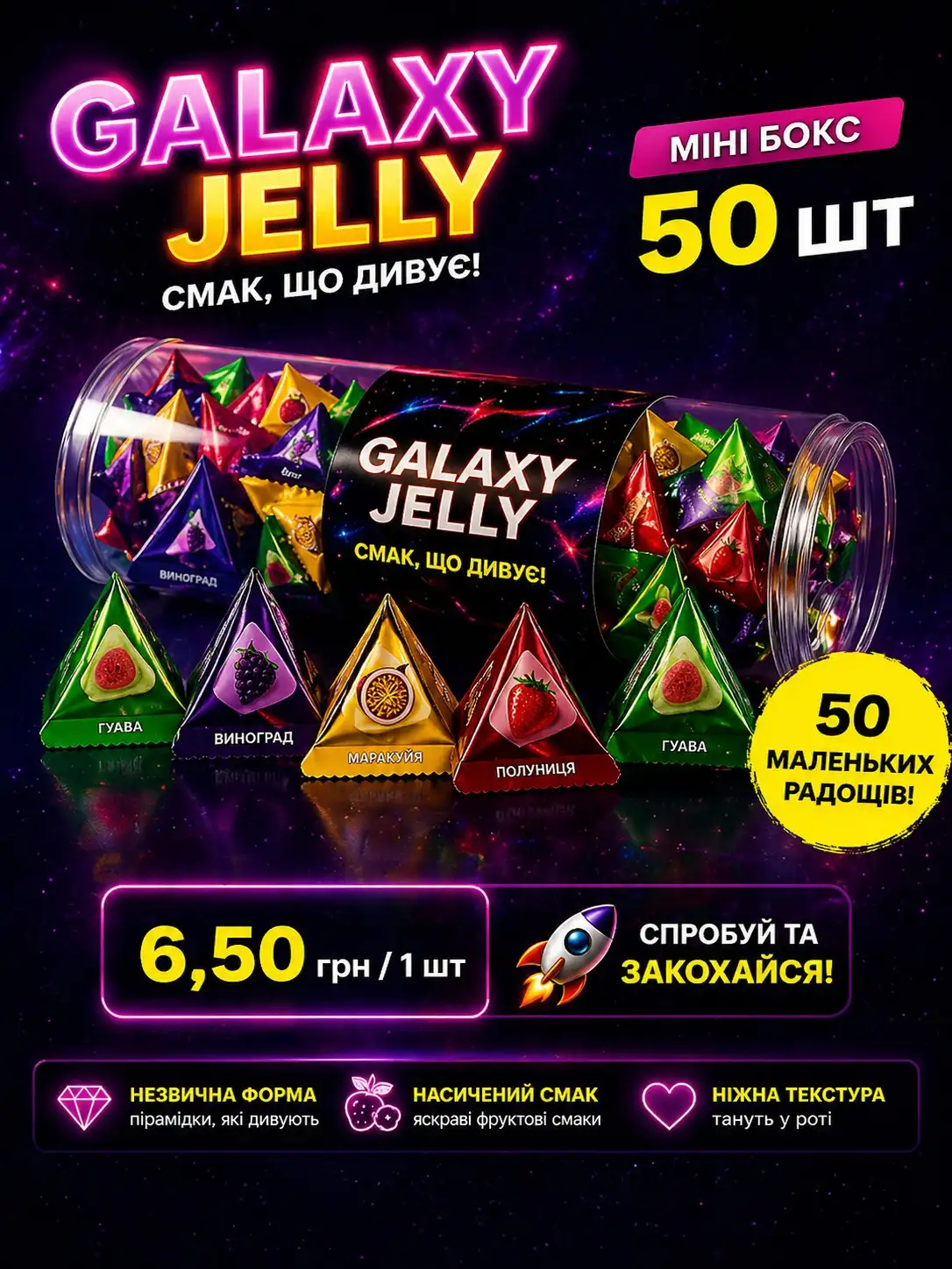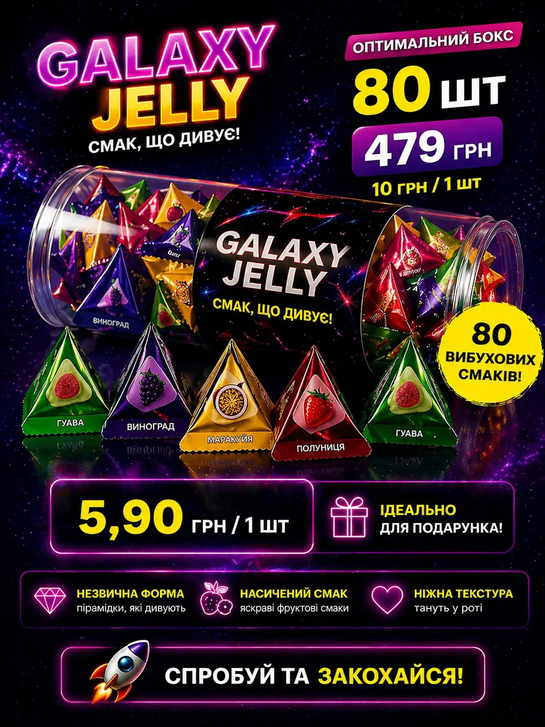 желейки у формі пірамідок з насиченим фруктовим смаком і ніжною текстурою.
