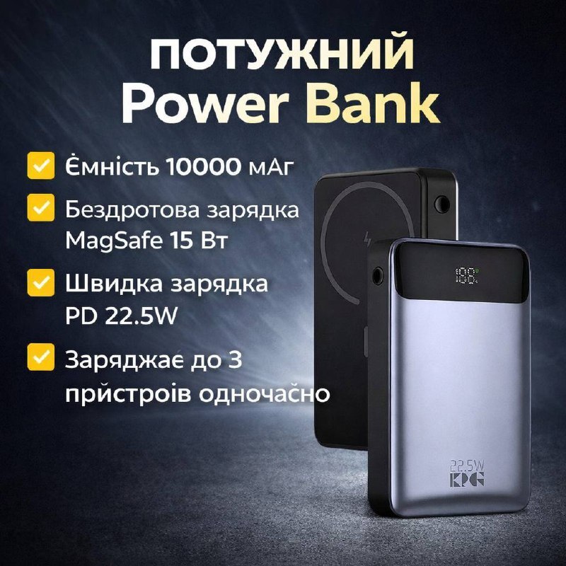 Магнітний павербанк 20000 мА·г чудово тримає заряд і надзвичайно зручний у використанні — просто прилипає до телефону! Швидка зарядка працює відмінно, заряджає пристрій дуже швидко. Тепер не переживаю про розряджений телефон у дорозі — завжди під рукою і без зайвих кабелів. Дуже задоволена покупкою! ⚡